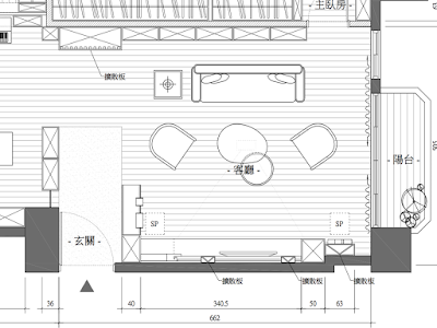 接著就是擴散板的部份,在平面圖出來的時侯,就帶著設計師跟老闆一起討論擴散板的位置、實作方式,但是符合老闆聲學要求的擴散板造型,擺在客廳實在是不大搭 =.=